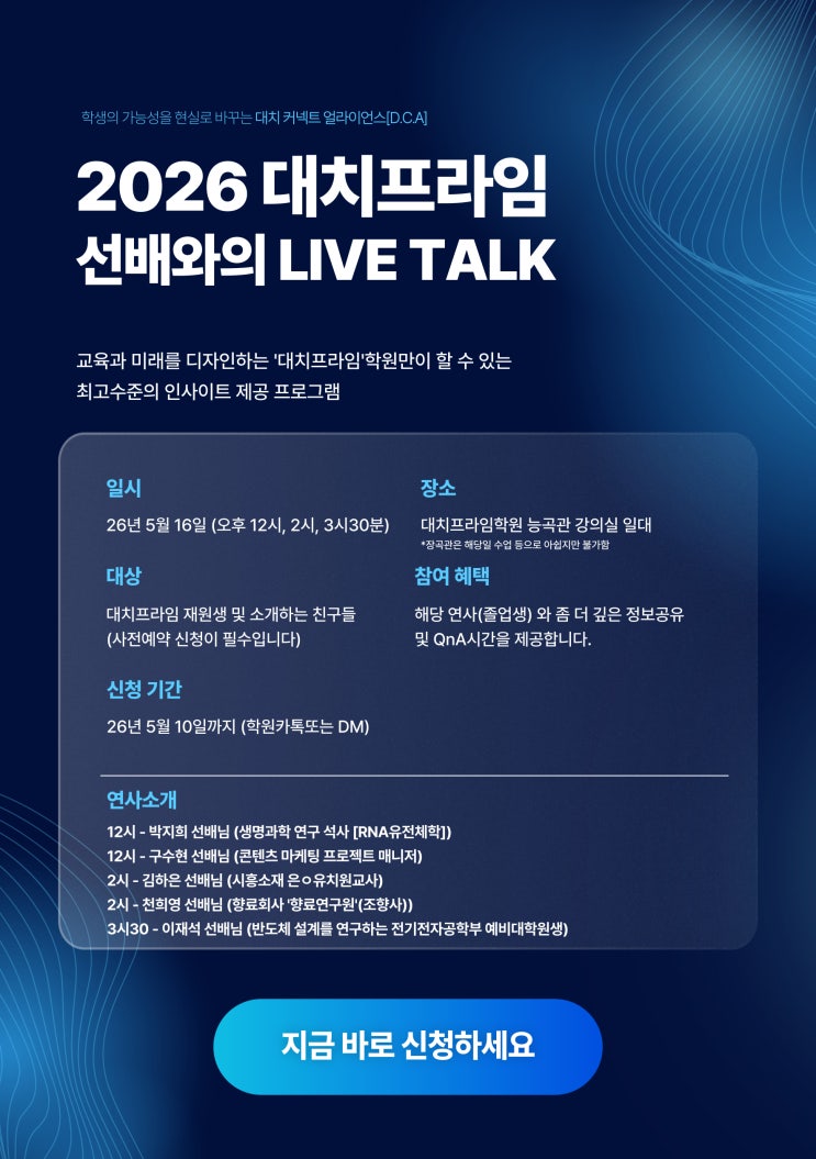 대치프라임학원 (능곡관) / 대치프라임장곡학원 (장곡관)대치프라임 2026 DCA 라이브 토크