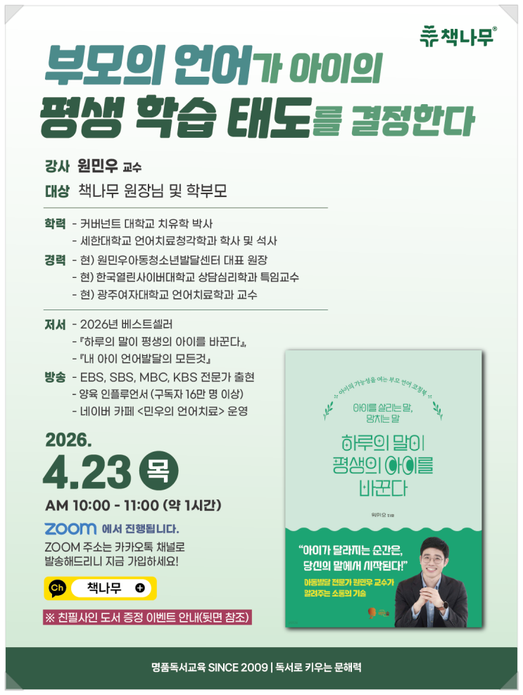 시흥 안산 초등 학부모 필독! 부모의 언어가 아이 학습 태도를 결정한다 — 원민우 교수 무료 줌 강의