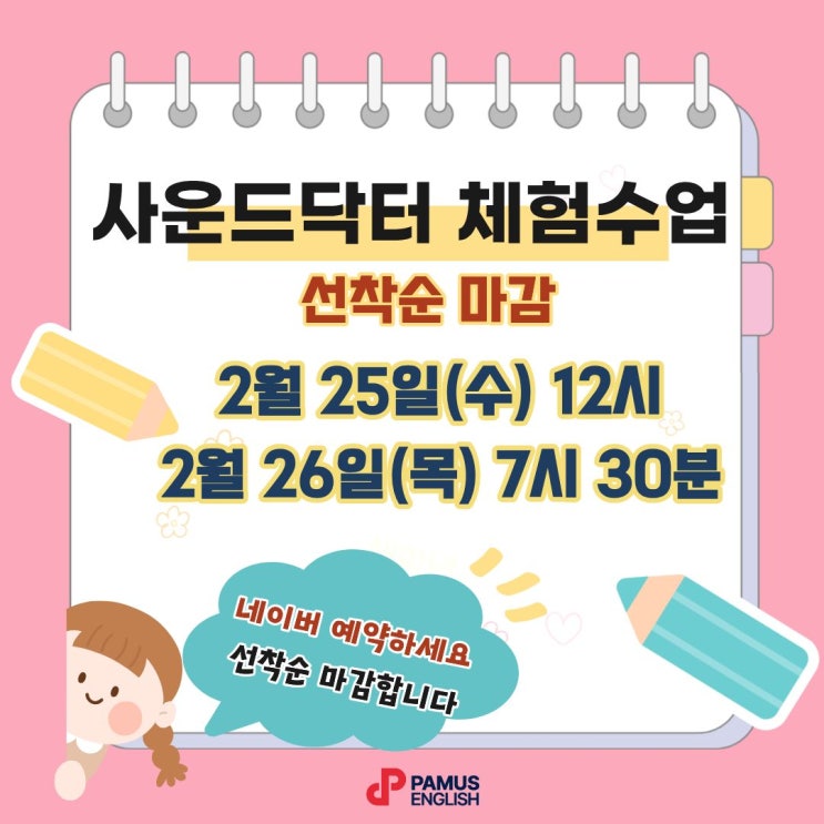 안녕하세요, 즐거움이 실력이 되는 학원 파머스어학원 서천캠퍼스입니다~ 3월 신학기에 새롭게 개강하는 사운드닥터 파닉스 반을 개강합니다 파닉스 체험수업도 준비되어 있으니, 서둘러 예약해주세요~!! 오는 12월25일(수) 12시와 26일(목) 저녁 7시 30분 2차례에 걸쳐 파닉스 체험수업과 학부모간담회 선착순 예약을 받습니다. 파머스영어의 마법의 파닉스 <사운드닥터> 수업을 경험해보세요 체험수업 후에는 아이들을 위한 Science & Craft 만들기 활동과 학부모님들을 위한 개인별 학습 상담을 진행합니다. 학부모 간담회 및 개별 학습 상담 시간에는 파머스영어의 파닉스 과정을 상세히 소개해드립니다. 파머스영어의 '사운....... <img src="https://blogthumb.pstatic.net/MjAyNjAyMjNfMzkg/MDAxNzcxODEwMTcxNTY0.kAEtiObQQ-edKo5_4e_UUVtMToHCr5AyOpNiFalRqF0g.ql5CGe0TiawNsyq9RvF_I-84V9q4bza5I29VlGpJcJkg.JPEG/1.jpg?type=s3" />