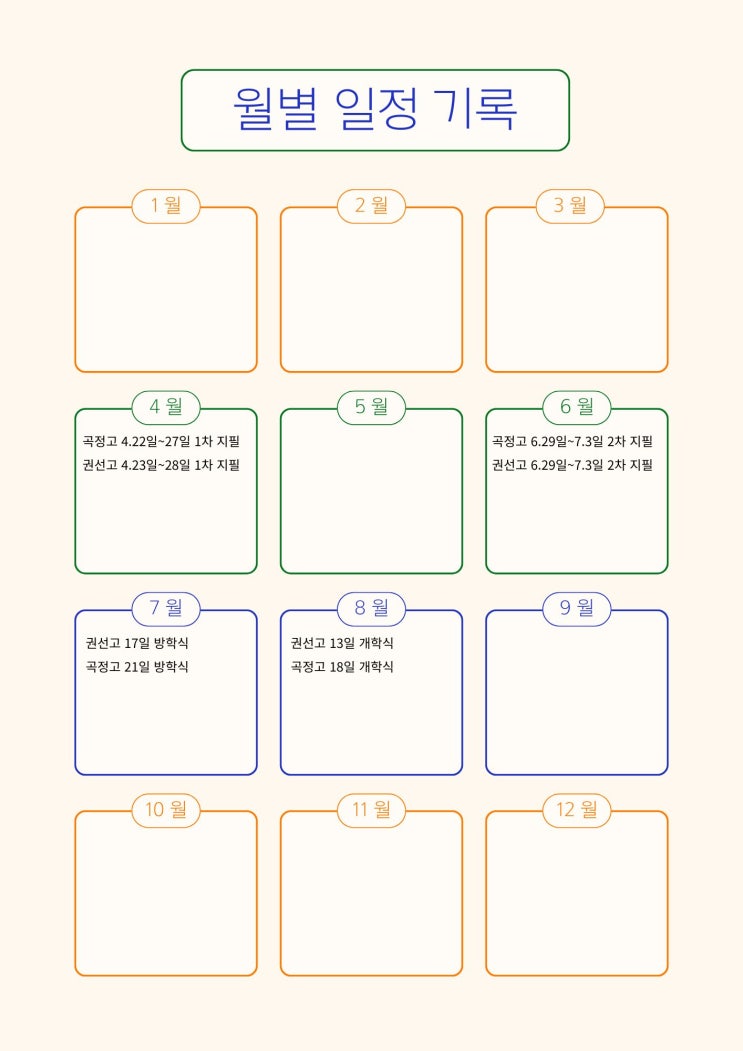 권선고, 곡정고의 학사일정이 나왔습니다. 우선 1학기 지필고사 일정이 4월 22일 또는 23일에 시작하네요. 아직 인근 중학교의 학사일정이 나오진 않았지만, 다른 해에 비해 다소 빠르게 시작되므로 일찌감치 내신대비를 시작해야겠습니다. 홈페이지에 학사일정이 올라오는대로 추가해 나가도록 하겠습니다. <img src="https://blogthumb.pstatic.net/MjAyNjAzMDFfMzIg/MDAxNzcyMzAxMzUwOTUx.xEmIV4-Hnp-WrJ03B44Rxv8hr1RX25xiJpDdp_0qZxAg.AOVhS8xXqVUDPlIG52RPkogqjs2xqPm5fguSLx0ZUFYg.JPEG/%C5%A9%B8%B2%BB%F6_%BD%C9%C7%C3%C7%D1_%BF%F9%B0%A3_%C0%CF%C1%A4_A4.jpg?type=s3" />