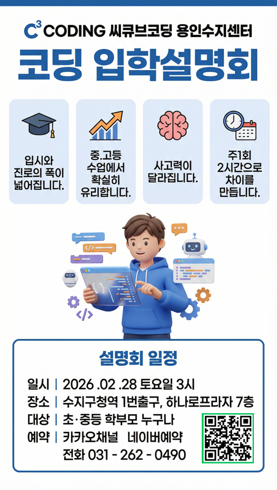 [씨큐브코딩 용인수지센터] 2월 설명회 안내|"초등부터 대학까지, 왜 지금 코딩을 준비해야 할까요?”