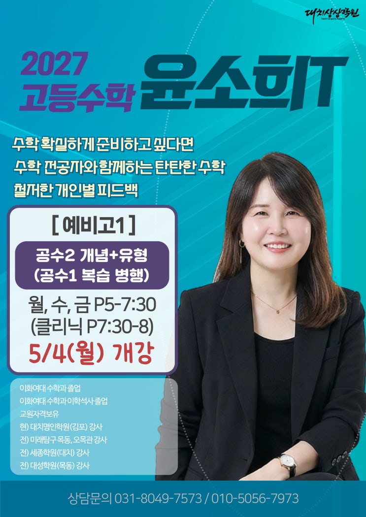 예비고1(중3) 고등수학의 시작, 윤소희 선생님의 압도적 클래스 개강
