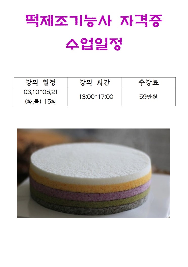 ★ 떡제조 기능사 자격증 취득과정 ★ 김포중앙요리제과학원