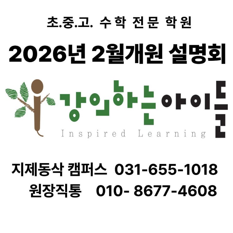 평택 동삭동 학부모님들께 반가운 소식 전해드립니다. 강의하는 아이들 수학전문학원이 평택 **동삭동(지제역 인근)**에 새롭게 문을 엽니다. ❓ 왜 수학은 ‘강의하는 아이들’일까요? 강의하는 아이들은 단순히 문제만 풀고 계산만 하는 수업이 아닙니다. ✔ 스스로 설명하고 말하는 수학 ✔ 개념을 알고 이해해서 푸는 수학 ✔ 외운 풀이가 아닌 생각하는 힘을 키우는 수업 수학을 잘하게 하기보다 수학을 이해하게 만드는 수업을 합니다. ✏️ 이런 아이에게 추천합니다 선행을 했는데 개념이 약한 아이 수학에 자신감을 잃어가는 아이 왜 이렇게 푸는지 설명이 어려운 아이 개원 설명회 안내 개원 설명회는 사전 예약제로 진행됩니다. ....... <img src="https://blogthumb.pstatic.net/MjAyNjAxMTdfNiAg/MDAxNzY4NjQwMTI5NzI3.YnvikHZ0b6dkooJDr1UjN0L3dBUYdKw2qevflmzyO20g.GGhF9j0hqc4rfYz1xGu5WEXdTEuewIJ2NMB6-zNuev8g.JPEG/%C1%A6%B8%F1%C0%BB_%C0%D4%B7%C2%C7%D8%C1%D6%BC%BC%BF%E4._%282%29.jpg?type=s3" />