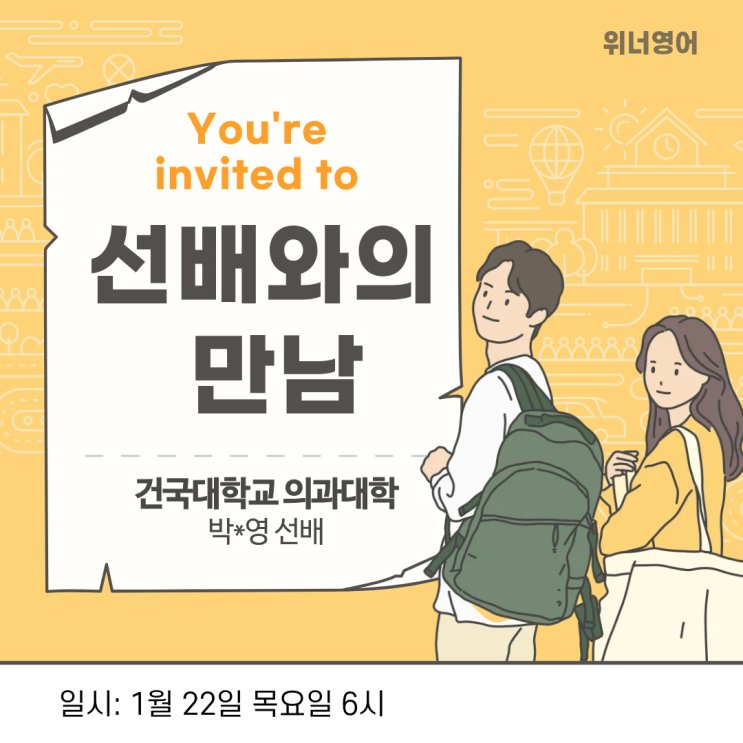 동계 방학을 맞이하여 다양한 학습 정보를 제공하고자 '선배와의 만남'을 준비했습니다. 북일고를 거쳐 2026학년도 수시 건국대학교 의예과 최종합격한 박*영 선배에게 생생한 대입 정보를 들을 수 있으니 재원생들의 많은 관심바랍니다. <img src="https://blogthumb.pstatic.net/MjAyNjAxMTlfMzIg/MDAxNzY4ODExNzg1OTg4.y4iqDRw8y3yotFNn5d8JNFAEUzFT9NoQ9Jdxkf1_obwg.t3UAO7oLWYXuBw7B7zVqjZm0Ym9dwDSdj9BXXed3zGcg.PNG/%C1%A6%B8%F1%C0%BB_%C0%D4%B7%C2%C7%D8%C1%D6%BC%BC%BF%E4..png?type=s3" />