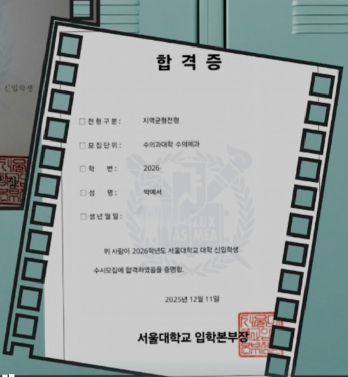 26년도 안화고재원생 박**학생이 서울대 수의예학과에 합격하였습니다 축하합니다 <img src="https://blogthumb.pstatic.net/MjAyNTEyMTVfMjU5/MDAxNzY1ODAwMDczNTQ3.i8ns6Bm7VUIM-KbRjO8iv22OpWgwn0yRs2RmNZ6Uzssg.2IUyl8mQRso9LRnlBP9KDUOQJpA3AU-bZxda2Hjq-QQg.JPEG/Screenshot%A3%DF20251215%A3%DF194920%A3%DFKakaoTalk.jpg?type=s3" />