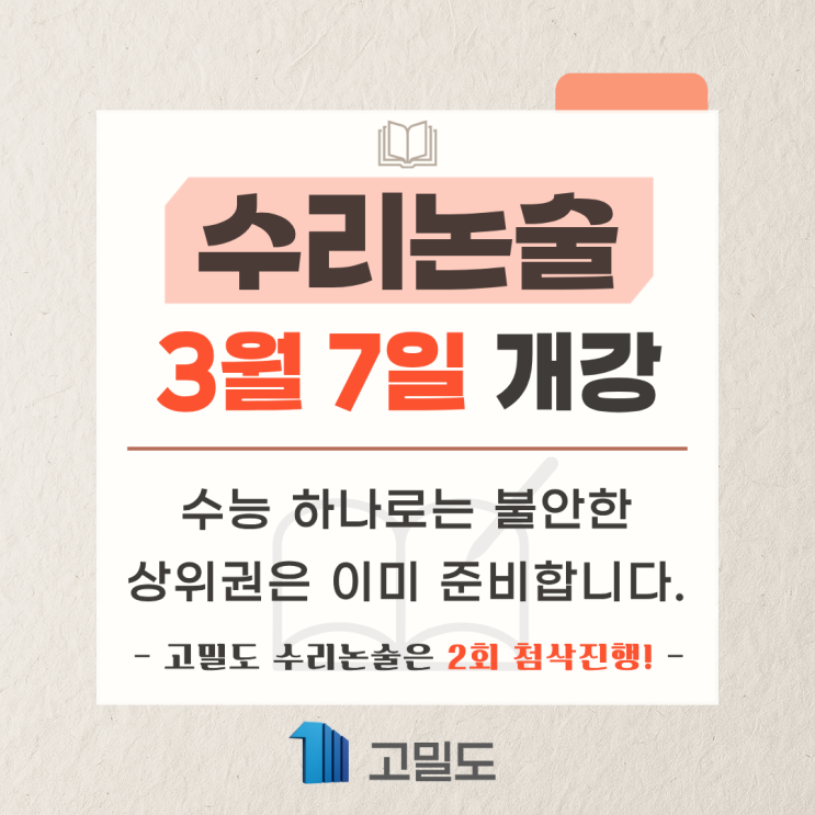 [산본수리논술]고밀도학원 수리논술 3월 7일 개강 / 수능 하나로는 불안한 상위권, 수리논술을 준비합니다.