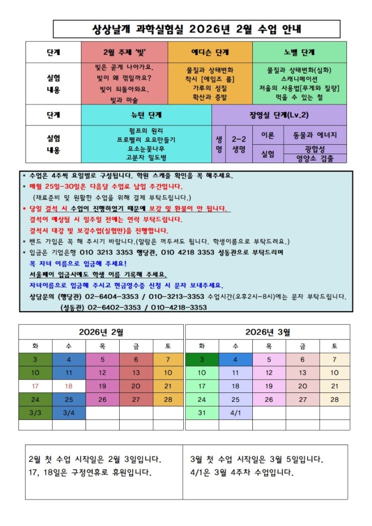 [행당/신금호 과학학원] 상상날개 과학실험실 2월 교육과정 안내