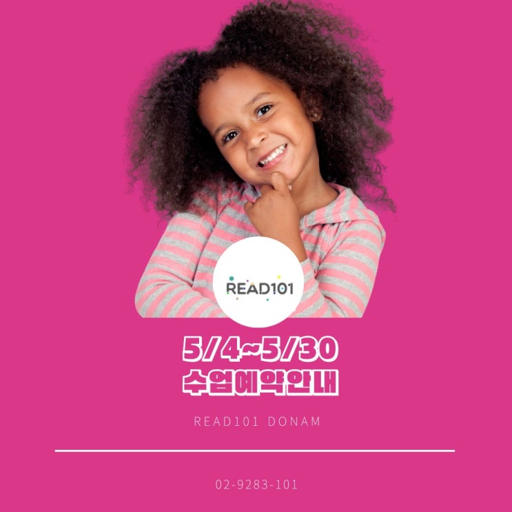 안녕하세요, 리드101돈암점 입니다. 5/4~5/30 예약제 수업시간이 아래와 같이 오픈될 예정이오니 참고 부탁드립니다. 고정 예약을 원하시는 경우 희망요일과 시간을 댓글로 남겨주세요. 평일13:00 - 21:00 → 1시,2시,3시,4시,5시,6시,7시 (총7타임) 토요일 9:30 - 15:30 → 9:30,11:30,13:30 (총 3타임) 5/5(화), 5/25(월) 단축수업 10:00 - 14:00 (총 2타임) 5/15(금), 5/16(토) 보수공사로 인해 휴원 ▶ 4/20(월) 예약 OPEN! [수업 예약시 주의사항] 꼭 읽어주세요! 노쇼/당일 변경/취소시 횟수차감됩니다. (예외 없음) (직접 취소 어려우실 경우, 해당 수업 전날까지 문자 혹은 톡으로 연락주시면 취소해드립니다.)....... <img src="https://blogthumb.pstatic.net/MjAyNjA0MjBfODgg/MDAxNzc2NjYyNzY1MzUz.AbngRco9S6yKKJtc366YvZt4637F4UPgk5PSh--YXugg.G_8WRP-OQLph8Mayamtk6ZYUvwTSJmVpLhK-8I2fbaog.JPEG/Green_minimalistic_bright_3D_character_psychologist_post_cover_Instagram_tem.jpg?type=s3" />