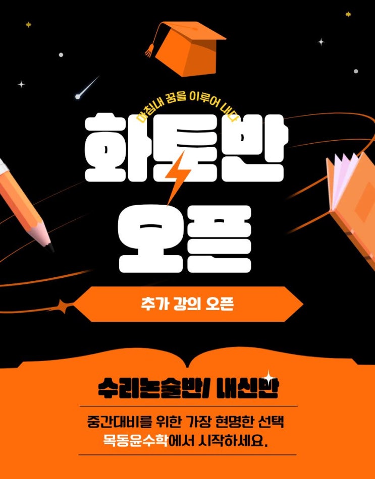 목동에서 월수토만 기존에 강의를 해서 신규문의가 와도 받지 못하고 있었습니다. 드디어 화요일 토요일 스케줄을 조정했습니다. 목동에서도 화요일 토요일반 오픈을 합니다( 추가 클리닉 요일 지정) 신규문의 010 5808 6672 학년/ 진도 남겨주시면 상담연락순차적으로 드리겠습니다^^* <img src="https://blogthumb.pstatic.net/MjAyNjAxMDhfNDIg/MDAxNzY3ODQ4MDQxNTYy.lIVyMW9xA2orqNO7waptuKDaDmq7hrdExGVRh1Ll5eQg.i6CnXAgKa83Miujz0db4X2X7Zuwh8rW7uaEszzTkmHsg.JPEG/%C0%B1%BC%F6%C7%D0.jpg?type=s3" />