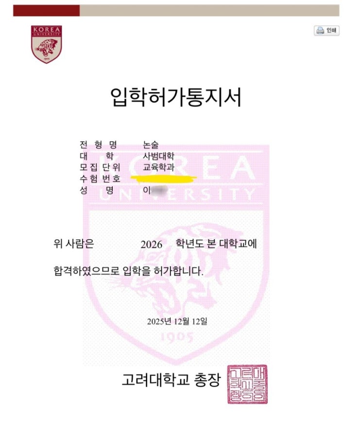 2026 우상공 논술 최초합 폭발!! 합격증 대방출