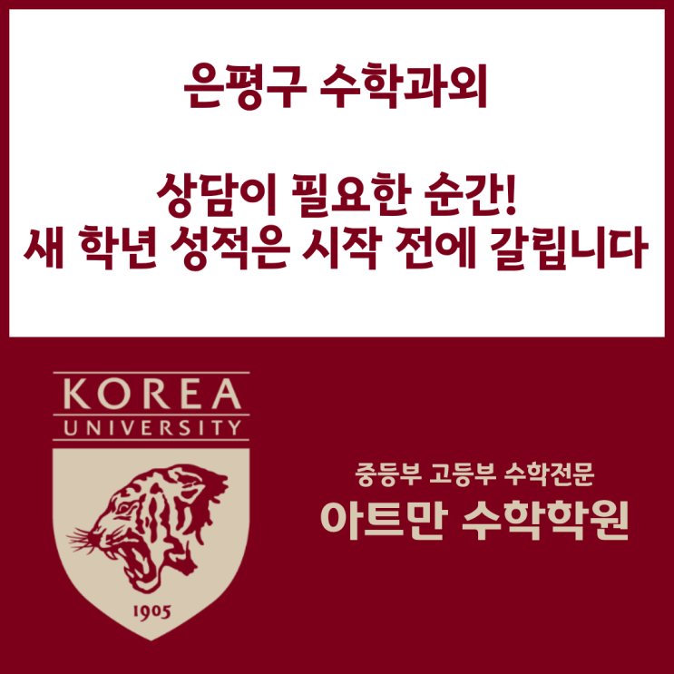 안녕하세요. 은평구 구산역 아트만수학학원입니다. 개학이 이제 열흘 정도 남았습니다. 방학의 끝이 가까워지는 시기이면서 새로운 학년을 준비해야 하는 시기입니다. 새 학년이 시작되는 시기에는 늘 비슷한 상담이 이어집니다. “이번 학기에는 제대로 해보려고요.” “작년처럼 중간에 무너지지 않았으면 좋겠어요.” 그래서 많은 분들이 은평구 수학과외, 학원, 인강 등 여러 방법을 고민하게 됩니다. 하지만 이 시기에 가장 중요한 건 무엇을 더 시작하느냐가 아니라 지금 상태를 정확히 아는 것입니다. 새 학년 시작 전, 많이 틀리는 선택 새 학기 상담을 하다 보면 자주 보이는 패턴이 있습니다. 문제집을 새로 산다 선행을 시작한다 공부....... <img src="https://blogthumb.pstatic.net/MjAyNjAyMjBfMjc4/MDAxNzcxNTcxNzk3OTAx.yDzITsjkmUDDbX0LtGAEtSzwq4pYzXZlisnqhoBmsncg.zfO-PxQ4h1evWh5P-kmzMiZIw27nvFrXMiv1luCITEYg.PNG/%C1%A6%B8%F1%C0%BB_%C0%D4%B7%C2%C7%D8%C1%D6%BC%BC%BF%E4..png?type=s3" />