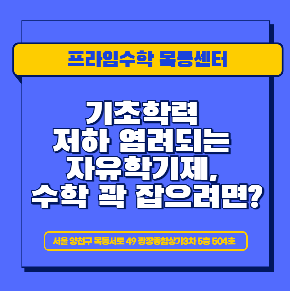 안녕하세요. 프라임수학 목동센터입니다. 2026년, 새해의 시작과 함께 중학교 입학을 하는 아이들은 자유학기제로 한 학기를 보냅니다. 시험에 대한 부담이 없는 기간으로 자신의 흥미와 적성을 찾기 위한 시간으로 운영되지만, 그만큼 아이들의 학습 동기가 약화되기 쉬우면서도 중요 중등 핵심개념을 놓칠 위험도 높은 시기입니다. 그래서 오늘은 예비중1 학생들이 기초학력이 떨어질 수 있는 위기를 피하고 다음 학기부터 본격화될 내신시험에도 문제 없이 학습을 이어가기 위한 신서중수학 공부 전략을 살펴보도록 하겠습니다. 중1 학생들은 자유학기제를 놀아도 되는 시간으로 받아들이기도 하지만 실은 이 시기는 가장 중요한 개념들을 집....... <img src="https://blogthumb.pstatic.net/MjAyNjAxMDhfMTY5/MDAxNzY3ODU1OTgxNzI4.Y8V1hAVJZJL-Z6tj8SyOd6hLdXbVMGoeSv_ex6tm35og.j2syn3Z5a5Y5s7j1FCD7BQkRylQBftT8YaPpccvN4Iog.PNG/20260108160615.png?type=s3" />