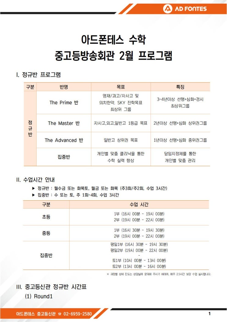 안녕하세요, 아드폰테스 학원입니다. 중고등방송회관 2026년 2월 수학 프로그램을 안내드립니다. 많은 관심과 문의 바랍니다 : 02-6959-2580 입학테스트 예약하기 ☞ https://bit.ly/3DzG1VI <img src="https://blogthumb.pstatic.net/MjAyNjAxMTZfMTc2/MDAxNzY4NTQwODU4ODc3.O3en5_ehkd6SByU90H9zyvr3Qg55XZKmGiVHxu7qT9Mg.X9G9ReoyYvCnDcA5WHHlytu4GvwUHr4tE9W_Q1R_M6Ag.JPEG/%C7%C1%B7%CE%B1%D7%B7%A5_%BE%C8%B3%BB%B9%AE_2026%B3%E2_2%BF%F9-_%C1%DF%B0%ED%B5%EE%B9%E6%BC%DB%C8%B8%B0%FC001.jpg?type=s3" />