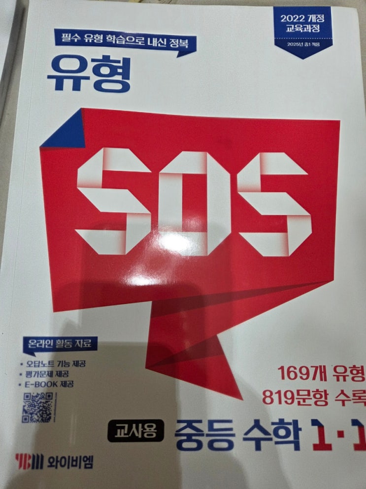 ybm하면 영어 브랜드 라고 알고 있죠? 저도 그랬어요! 그런데 작년 2022개정 교육과정에서 포항여중이 ybm출판사를 교과서로 채택하면서 ybm출판서에서 수학교과서도 만드는구나~ 라는 것을 알게 되었답니다. 천재출판 류희찬 저자가 ybm출판으로 옮긴거 같은데 류희찬 교과서 제가 나름 애정하는 저자입니다 유형 sos 제가 사실 받고 바로 마음에 들어서 거래하는 총판에 여쭤봤는데 구하긴 어려웠어요 인터넷은 구입 가능! 전 신사고 쎈, 일품을 애정하는 쌤입니다. 하지만 최근 아이들 학력저하로 많이 힘들지 않으면서 2번째 교재로 돌릴 교재를 찾고 있었는데 때마침!! 구성은 중등 유형책들의 구성과 비슷하답니다. 유형....... <img src="https://blogthumb.pstatic.net/MjAyNjAyMDRfMTgx/MDAxNzcwMjA1MTM1OTI4.Vl2n6QhCdJG7CI5-i6b76qxVLsM7QNmML-u7tIwRIeEg.UvCeZv_nCUAsREkjQaB_t2fvivcxJ2CIuXIR_RTPuD8g.JPEG/900%A3%DF20260204%A3%DF202648.jpg?type=s3" />