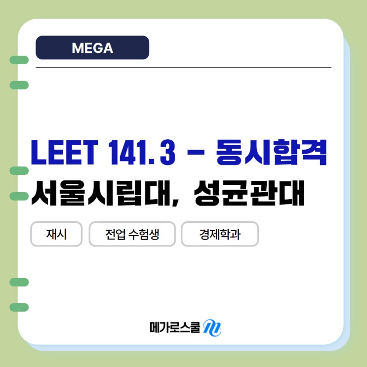 “경제학 전공자로서 경재학적 통찰로 금융시장의 공정성을 수호하는 법조인이 되겠습니다.” 2026학년도 서울시립대·성균관대 로스쿨합격 수기 中 안녕하세요. 메가로스쿨입니다. 이번에 소개해 드릴 수기는 서울시립대와 성균관대 법학전문대학원에 합격한 선배님의 수기입니다. 서울시립대 로스쿨 26학년도 합격자 전공 계열을 보시면 상경계열이 16명으로 경영/경제학과를 전공자의 합격율이 높음을 확인 할 수 있습니다. 이번 선배님은 경제학을 전공자로서 금융 규제와 집행을 담당하는 전문 법조인이 되고자 로스쿨 진학을 결심하였는데요, 초시가 아닌 ‘재시’를 결정한 뒤에 전업 수험생으로서 다시 도전하는 과정을 수기로 자세히 기....... <img src="https://blogthumb.pstatic.net/MjAyNjA0MjRfNTIg/MDAxNzc3MDE2MDc2MDE3.PcSC5ZgKQ_yUw0n32VtONemL93pP9SSYEImR36DJx1gg.p08ZwdWekC1VpX_gCgRqHMNVv6R2Z7GDDpCoOg9tLiMg.JPEG/%BA%B9%BB%E7%BA%BB_%BA%B9%BB%E7%BA%BB_%BA%B9%BB%E7%BA%BB_%BA%B9%BB%E7%BA%BB_%B7%CE%BD%BA%C4%F0_%C1%F7%C0%E5%BA%B4%C7%E0_0206_1.jpg?type=s3" />