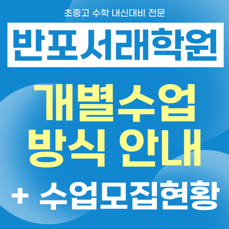 반포동 서래마을 수학학원 <개별수업 방식 안내> + 수업 모집 현황(초등/중등)
