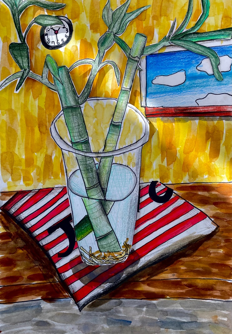 안녕하세요! 그림나무창의미술학원입니다:) 초등부_대나무 드로잉 자연 속 대나무를 이용해 빛과 그림자의 원리를 이해하며 밝기 단계(명암)를 표현해 보는 수업을 진행했어요~~! 자~~! 먼저 대나무를 관찰해 볼까요~? 속이 비어있고, 곧은 줄기에 뾰족한 잎이 달려있어요! 대나무의 특징 중의 하나가 마디인데요~~ 대나무의 마디는 대나무가 가늘지만 길게 자랄 수 있도록 도와준다고 해요! 대나무는 마디 부분에서 얇은 가지가 나와서 잎사귀가 생겨요 대나무 모양새를 잘 관찰해서 어느 부분은 무성하고 어느 부분에는 여백을 주며 멋진 대나무를 그려볼거예요~~! 대나무의 둥근 기둥 형태를 명암 단계로 표현하고 같은....... <img src="https://blogthumb.pstatic.net/MjAyNjAxMTFfMTI5/MDAxNzY4MTI1OTIyNzI5.spUjoMlMC_8VsyjUynqe0HeMuHOx3kKmoyNLmI93ylwg.x91LwWv4aulnjzqjBZqtYKznxh0D0KrKbMcxWQ-r1yQg.JPEG/IMG_3473.jpg?type=s3" />