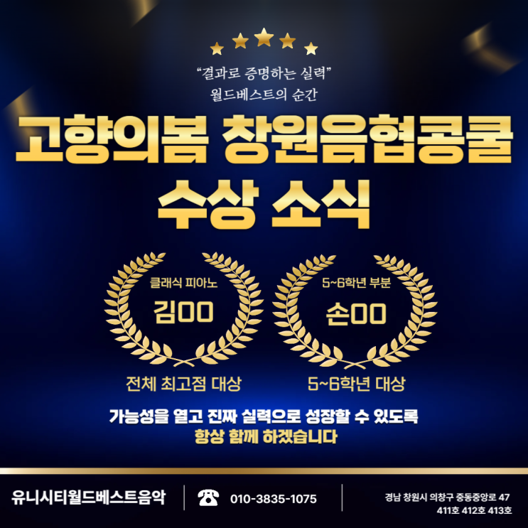 [창원 중동 음악학원] 결과로 증명하는 실력, 월드베스트의 순간