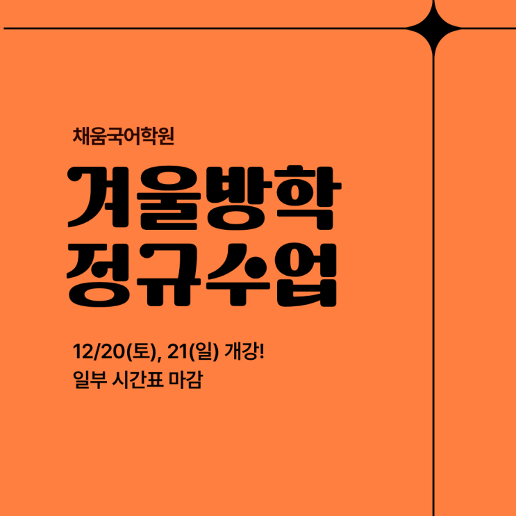 방이동 국어 | 채움국어 2026 겨울방학 정규 수업 시간표 안내