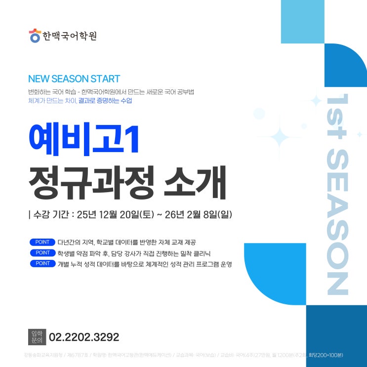 [한맥국어학원]26년 1st 시즌 - 정규수업소개-고1