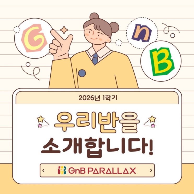 Smart 4G Class! 새로운 예비 중등부인 4G Class를 소개합니다! 2026년 기준으로 6학년이 되는 지앤비 범둥이들은 모두 1학기부터 예비중등부로 승격 되는데요. 승격된 만큼 교재 내용과 단어 난이도가 전체적으로 복잡하고 어려워지며, 그간 했던 것 보다 더 높은 난이도의 과제를 요구 받습니다. 대부분 지앤비에서 제법 오래 공부했던 친구들이라 이번 과정도 무리 없이 해내리라 믿습니다 1학기의 첫 교재를 소개합니다! Listen To Me! 2-1 지앤비 온라인으로 듣기를 어느 정도 진행했다면, 이제는 본격적인 Listening Script와 함께 하는 Listening Class가 다가옵니다. 스크립트를 모두 숙지하고 암....... <img src="https://blogthumb.pstatic.net/MjAyNjAyMTFfMjk1/MDAxNzcwNzk0MzU2MTk4.sDJlsRpqFfWQMlXgAr0kWyXjtLnNdRquP0ee8t4T8AMg._Xo-la54xaXyAMjXXH1VMIMXBD1bpbXffSKedRk1CdMg.JPEG/%3F%3FNo.1_GnB_%C6%D0%B7%B2%B7%A2%BD%BA_%B9%FC%BE%EE_%C4%B7%C6%DB%BD%BA%3F%3F_%BB%E7%C1%F8_20260206_1.jpg?type=s3" />