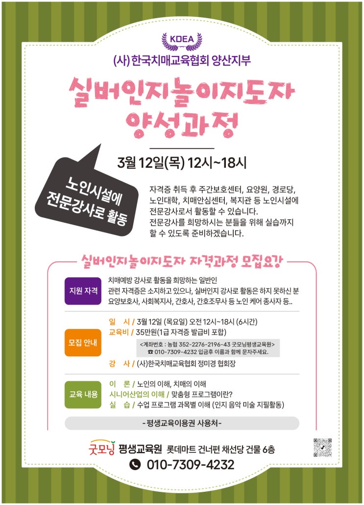 실버인지놀이강사양성과정 개강 3월 12일 - 굿모닝평생교육원
