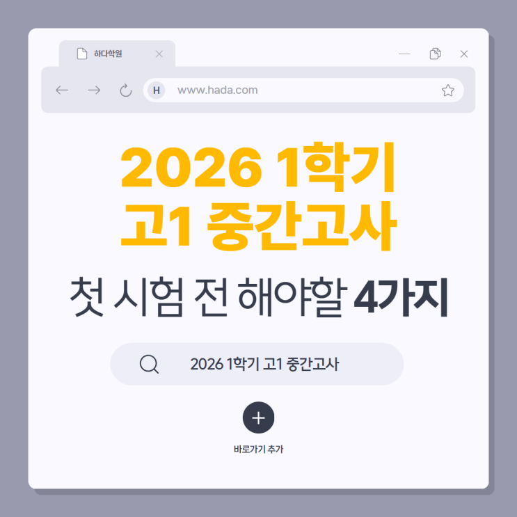 안녕하세요, 장안동 하다학원입니다. 어느덧 중간고사 기간이 코앞으로 다가왔습니다. 새학기 첫 중간고사는 아이들이 가장 많이 긴장하고 흔들리는 시기입니다. 특히 1학년 학생들은 “처음 겪는 시험”이라는 부담감 때문에 평소 본인 실력보다 긴장감에 더 영향을 받는 경우가 많습니다. 아이들이 시험에서 당황하지 않고 최선의 결과를 낼 수 있도록, 장안동 하다학원에서 중간고사를 앞둔 고1 학생들과 학부모님들께 '시험 직전 4가지 꿀팁'을 전해드립니다! '모르는 내용'을 억지로 알려고 하기 보다, '아는 내용'을 바로 잡기 시험 직전이 되면 새로운 내용을 더 보려고 하는 경우가 많습니다. 자신이 놓친....... <img src="https://blogthumb.pstatic.net/MjAyNjA0MTlfMjM5/MDAxNzc2NTYyNDYzMDc4.U-4tn-yEreJhqtxRaiDcmFVnUmSRM1vqbem5BT7RzZEg.iSYVrXvmtSu2El8WwudzmiBu-fHuc2zqOm_-hXOvJTgg.PNG/1.png?type=s3" />
