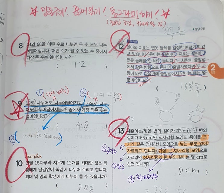 수학 기본 개념을 익히고 활용문제를 자신있게 풀고서는 드디어 응용심화문제들을 접하게되면 " 마녀쌤! 어려워요!" "마녀쌤! 안풀려요! "쌤! 이 문제는 좀 이상해요!" (어???) ^^;::: ㅎㅎㅎ 라는 소리가 여기저기서 들리곤 하죠^^ 오우! 노노노~~ 얘들아~ 다시 한 번 보세요^^ 아이들이 문제를 풀다가 막히면 마녀쌤이 문제를 그냥 한 번 소리내어 읽어주기만 해도 "아!~ 알겠어요" 라고 하는 경우도 꽤 있습니다. 나원참! 쌤이 너희들한테 해 준건 한글로 적혀있는 문제를 소리내서 한 번 들려준거밖에 없거등요 ^0^ 문제가 잘 안풀릴 때에는 개념을 다시 읽어보거나 떠올려본 후 문제내용에 무슨 일이 있....... <img src="https://blogthumb.pstatic.net/MjAyNjAyMDdfMjY1/MDAxNzcwNDYwMzE0MzM4.IkGdMIoAtEk9W9WZKQVDCxjLl_5kquY7220HRLtYHTgg.CW5ZwNySRZzNyV66p9bEqIiVvl1ZwvWkYhDIJjXwdmYg.JPEG/KakaoTalk_20260207_174230572.jpg?type=s3" />