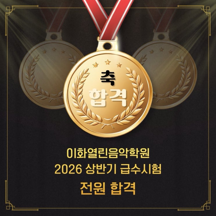 안녕하세요, 이화열린음악학원입니다☺️ 상반기 급수시험, 이화열린음악학원 전원 합격이라는 기쁜 소식을 전해드립니다 아이들과 함께 준비해온 시간들이 좋은 결과로 이어져 더없이 뿌듯하고 감사한 마음입니다 그리고 마침! 기다리던 트로피도 도착했어요 하나씩 받아 들고 환하게 웃는 아이들의 모습을 보니 그동안의 노력과 시간이 얼마나 값졌는지 다시 느끼게 됩니다 학부모님들께서 종종 “급수시험을 보면 어떤 점이 좋은가요?” 하고 여쭤보시는데요~ 무대를 준비하는 마음가짐부터, 무대를 위해 꾸준히 연습하는 시간, 그리고 낯설고 떨리는 큰 무대에 올라 연주를 마치고 내려와 느끼는 “나도 할 수 있다....... <img src="https://blogthumb.pstatic.net/MjAyNjAzMjRfMjMw/MDAxNzc0MzU4NDc4NTQ0.1_ZaDys4fNEcGuKo1P7Cj_B4bpPl9jyWzHvJekZR2Aog.xgN-K3NE-yiHnAg0sSaCQqgJAh2vRv8-4H67Hmqf3h0g.JPEG/%C1%A6%B8%F1%C0%BB%A3%AD%C0%D4%B7%C2%C7%D8%C1%D6%BC%BC%BF%E4%A3%DF%A3%AD001%A3%A89%A3%A9.jpg?type=s3" />