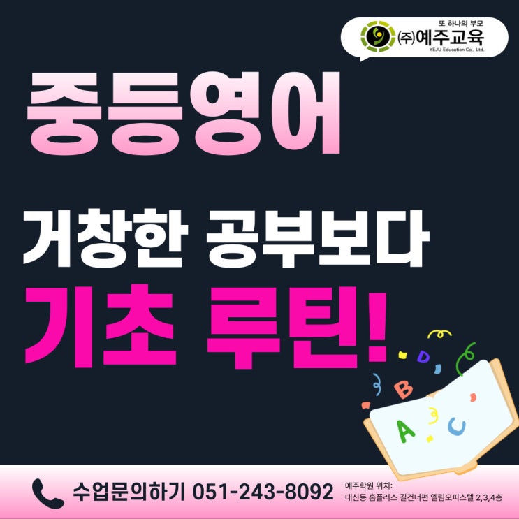 부산 서구 대신동 예주학원 중등 영어 내신의 시작, 실력 쌓는 기초 루틴