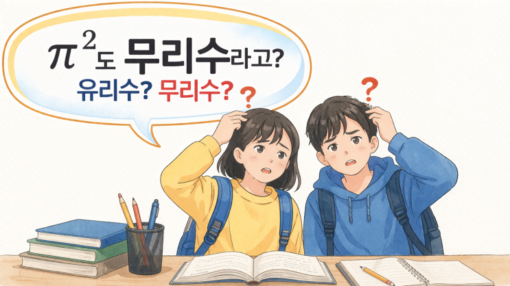 중학생 수학을 지도하다 보면, 아이들이 “계산은 맞는데 개념 문제에서 틀리는 경우”를 정말 많이 봅니다. 이번 영어듣기 평가가 끝나고 바로 이어지는 중간고사 대비에서도 결국 점수를 가르는 건 이런 문제들입니다. 하나 질문 드려볼게요 π를 제곱하면 유리수가 될까요? 많은 학생들이 “제곱하면 뭔가 깔끔해지지 않을까?”라고 생각합니다. 하지만 결론부터 말하면, π²는 여전히 무리수입니다. 왜 그럴까요? π는 단순한 무리수가 아니라 ‘초월수’라고 불리는 수입니다. 쉽게 말하면 ✔ 분수로 표현도 안 되고 ✔ 일반적인 방정식으로도 딱 떨어지지 않는 수입니다. 그래서 π를 제곱한다고 해서 갑자기 유리수가 되는 일은 없습니다....... <img src="https://blogthumb.pstatic.net/MjAyNjA0MTFfMTAg/MDAxNzc1ODkwMjcxMjA1.jH55Gp7WRmj9R0VZviUlYs5rwd6laN0eNrePBOtxqI4g.XpItWd5fgJKN7U-9Fc1tzYnjwsZCyYF0S-mus-SvB24g.PNG/%3F%88%98%3F%95%99_%EB%AC%B8%EC%A0%9C%3F%97%90_%3F%8B%B9%3F%99%A9%3F%95%9C_%3F%95%99%3F%83%9D%3F%93%A4.png?type=s3" />