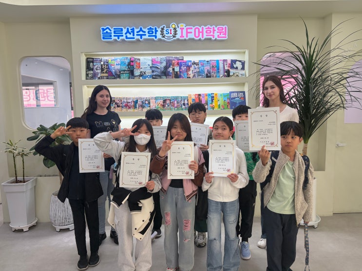 안녕하세요~~! 부산 전포동 송상현광장 앞에 위치한 IF어학원 입니다! ✨ 솔잎이들의 월말평가 상장 수여식 현장 공개! ✨ IF 어학원에서는 매달 진행되는 월말평가를 통해 듣기, 말하기️, 읽기, 쓰기✏️ 영어의 4대 영역을 골고루 점검하고 있습니다! 노력의 결실을 맺은 성적 우수자 친구들에게는 상장 수여식이 진행됩니다! 환한 미소로 상장을 들고 원어민 선생님과 함께 찰칵✨ 이 순간이 아이들에게는 큰 자신감과 더 큰 도전의 동기가 된답니다 단순한 시험이 아니라, 아이들의 성장과 성취를 확인하는 소중한 시간 매달 꾸준한 평가 + 확실한 보상 시스템 실력 향상은 물론....... <img src="https://blogthumb.pstatic.net/MjAyNjA0MTZfMTg2/MDAxNzc2MzMzNjQ0MjMx.GaHWSnprVUrOxAxsi_IJsf3nr-YQI8pzTaRVLnz03eQg.mv3R3ocCBZMMBA2aMvmPMCDGvqQTQ1LxcrBg-155aQog.JPEG/KakaoTalk_20260415_165713897.jpg?type=s3" />