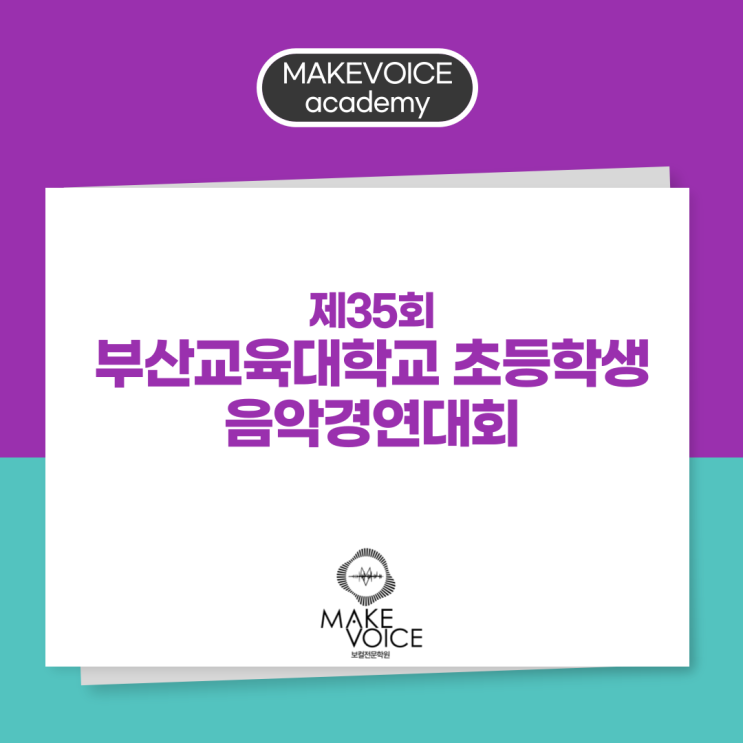 (부산교육청 제5087호) 안녕하세요. 부산 1:1 보컬컨설팅 전문학원, 체계적인 소수정원제로 꼼꼼히 관리하는 메이크보이스 보컬전문학원 입니다. 오늘은 제 35회 부산교육대학교 초등학생 음악경연대회 소식을 가져왔습니다!! 클래식, 국악, 실용음악 다양한 장르의 경연 대회인데요. 작년 음악경연대회에서 우리 메이크보이스 보컬전문학원의 수강생들이 실용음악 보컬 4학년 부문 2등, 3등을 수상하기도 했어요!! 경연 일시 2026. 5. 30 (토) 9:00 ~ 18:00 접수 기간 - 인터넷 접수 2026. 4. 20(월) ~ 2026. 5. 15(금) 실용음악 보컬 자유곡 1곡 참가비 개인 55,000원 ➡️ 합격 / 수상 ➡️ 인스타그램 상담 안내 원....... <img src="https://blogthumb.pstatic.net/MjAyNjA0MjFfMTc4/MDAxNzc2NzAxMjI4ODQ3.w0erNWRfMioSV6v6VPxT7xnOl0uHOOLALZYiWTvPvXUg.O1lYMvy73gGiYkg38zqEOyEdZX7aA0F2pQNP84ShT58g.PNG/%BF%C0%B5%F0%BC%C7-%C1%A4%BA%B8-001.png?type=s3" />