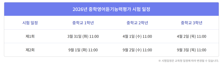 2026년 듣기평가 일정안내(+중1기출문제 3개년치 제공)