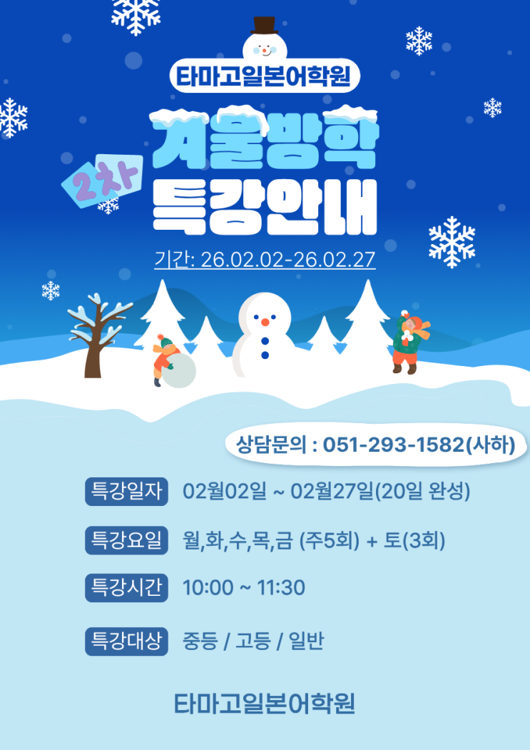 타마고일본어학원 사하본원 겨울방학특강(2차) 안내