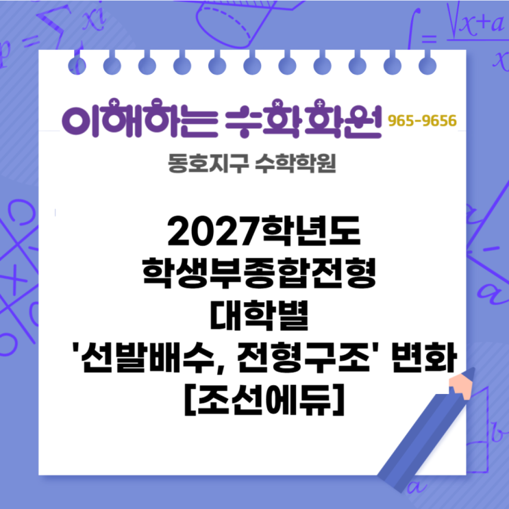 [입시정보] 2027학년도 학생부종합전형, 대학별 '선발배수, 전형구조'변화(조선에듀)
