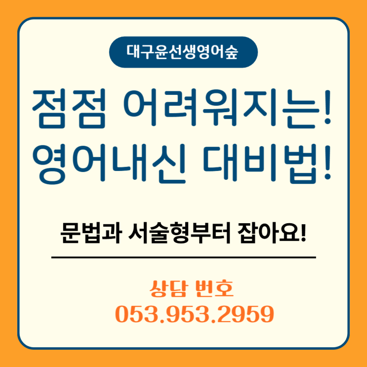 안녕하세요, 청구중 영어학원 신아중 영어학원 대구 윤선생영어숲킹수학입니다! 2월도 설날 명절이 지나고 나면 다 지나가고 새로운 신학기가 바로 시작이 되는 중요한 시점입니다! 지난 25년 2학기에 중학교에 입학하여 처음으로 영어 내신을 치렀던 1학년 학생들, 26년에는 2학년으로 진급하면서 1학기부터 본격적인 내신 관리가 필요합니다. 초등학교 6년 동안 시험을 한 번도 보지 않았던 아이들이 처음 경험한 중학 내신, 성적은 만족스러우셨습니까? 올해 2학년에는 영어내신시험 구성이 더욱 어려워지는데, 준비는 제대로 되어가고 있는지 확인이 필요합니다. 중학교 들어와서부터 성적이 좋지 않다면, 2학년 영어 내신 준비를 당장 시작....... <img src="https://blogthumb.pstatic.net/MjAyNjAyMTdfMjA2/MDAxNzcxMjYwNjY3MzIx.FAvBhVQXFYCfLUBdKNBMR8wjqVBABTMY9R8nez2zT2cg.ch7zVbGVjl1XTZ--HIHJnMNfdJCOIWOYNV4SOuU_n8cg.PNG/%C1%DF%B5%EE%BF%B5%BE%EE%B3%BB%BD%C5%B4%EB%BA%F1%B9%FD-001.png?type=s3" />