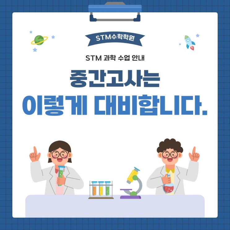 안녕하세요 STM수학학원입니다. STM과학수업에 대해 안내드립니다. 중간고사가 다가오면 많은 학생들이 “무엇부터 해야 할지” 막막해합니다. 그래서 STM 과학은 단순한 문제풀이가 아닌, 체계적인 시스템으로 중간고사를 준비합니다. 1️⃣ 매주 TEST – 실력 점검부터 확실하게 ✔ 전 시간에 배운 내용 점검 및 확인 ✔ 학습 내용 복습 및 부족한 부분 체크 ✔ 테스트 결과를 기반으로 이전 개념과 당일 수업 내용 연계 시험 대비의 시작은 현재 실력 파악입니다. 매주 진행되는 테스트를 통해 학생이 정확히 이해한 부분과, 아직 보완이 필요한 부분을 구체적으로 확인합니다. 단순히 점수를 확인하는 것이 아니라, “왜 틀렸는지” ?....... <img src="https://blogthumb.pstatic.net/MjAyNjAyMTNfMjI5/MDAxNzcwOTcyNTAzMDAx.CBz5XO5aPD7_6GpPdTsMnmPd2X0R9ZqGCMc90HiNldcg.miX4i2-_kCEOctp5UmpMFK2PeB7sasFa7RB3PzWBCX0g.JPEG/%C1%A6%B8%F1%C0%BB_%C0%D4%B7%C2%C7%D8%C1%D6%BC%BC%BF%E4._%285%29.jpg?type=s3" />