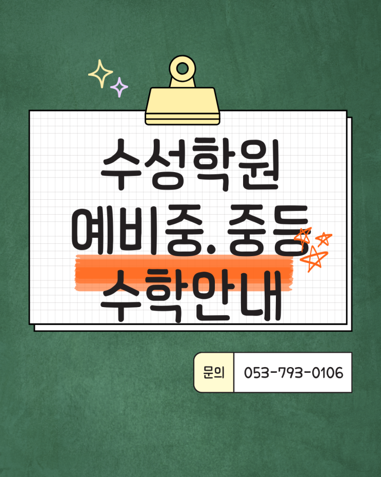안녕하세요 시지수성학원입니다 :) 이제 기말고사가 끝나고 겨울방학이 시작되었는데요 오늘은 저희 수성학원 예비중 수학 수업에 대해 간단히 안내드리려 합니다 ✨ 예비중 수학, 기초가 성적을 결정합니다 시지수성학원 예비중 수학 프로그램 안내 초등 수학과 중학교 수학은 단순히 난이도만 높아지는 것이 아니라, 개념의 깊이와 풀이 과정, 서술 방식까지 완전히 달라지는 시점입니다. 예비중 시기에 수학의 기초를 어떻게 잡느냐에 따라 중학교 3년 내신과 고등 수학의 출발선이 크게 달라집니다. 시지수성학원 예비중 수학 수업 시지수성학원 예비중 수학 수업은 무리한 선행이나 문제 양으로 밀어붙이는 방식이 아닙니다. 중학....... <img src="https://blogthumb.pstatic.net/MjAyNTEyMjlfNzQg/MDAxNzY2OTgyOTg2MTE0.q0OOuQPG7O4jv0DwTeIbjdE9S1RK3sbto6_QnWFqAU0g.S_zOWcfDEyuTJ0S7w3NtRqR8cP1fSugX0ucS2AO_yK8g.PNG/%BC%F6%BC%BA%BC%F6%C7%D0.png?type=s3" />
