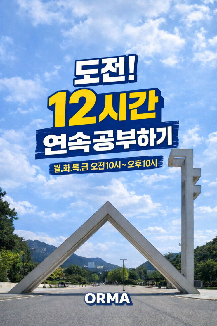 월화목금 12시간 연속 공부하기 이벤트 과연 몇명이나 참여할까? 기우였습니다. 한명도 빠짐없이 참여해서 본인 시간이 허락되는 범위안에서 최선을 다하고 있습니다. 우리는 2026 겨울방학에 12시간 연속 공부하기에 도전중입니다. <img src="https://blogthumb.pstatic.net/MjAyNjAxMDdfNzkg/MDAxNzY3NzY0NDY5MTA0.6jwfLeCyKvBGI6rv2W4eua69mWhWfhH3tJ3PeTpwj0Qg.1i89-Rwi7_krUiPWUMw5y0i1XI0_Jbb5FaJanISDeQ0g.PNG/%B5%B5%C0%FC12%BD%C3%B0%A3_%B0%F8%BA%CE%C7%CF%B1%E2%283%29.png?type=s3" />
