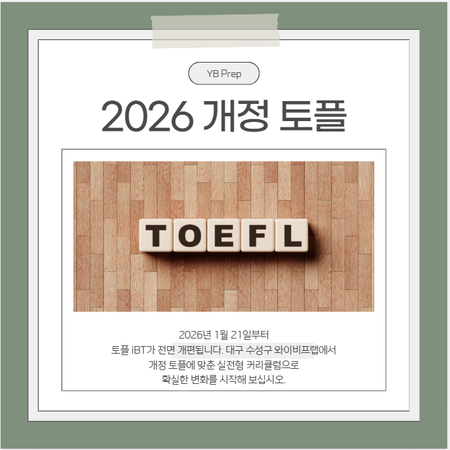 2026 개정 토플, 무엇이 달라지고 어떻게 준비할까요? 대구토플학원 와이비프랩