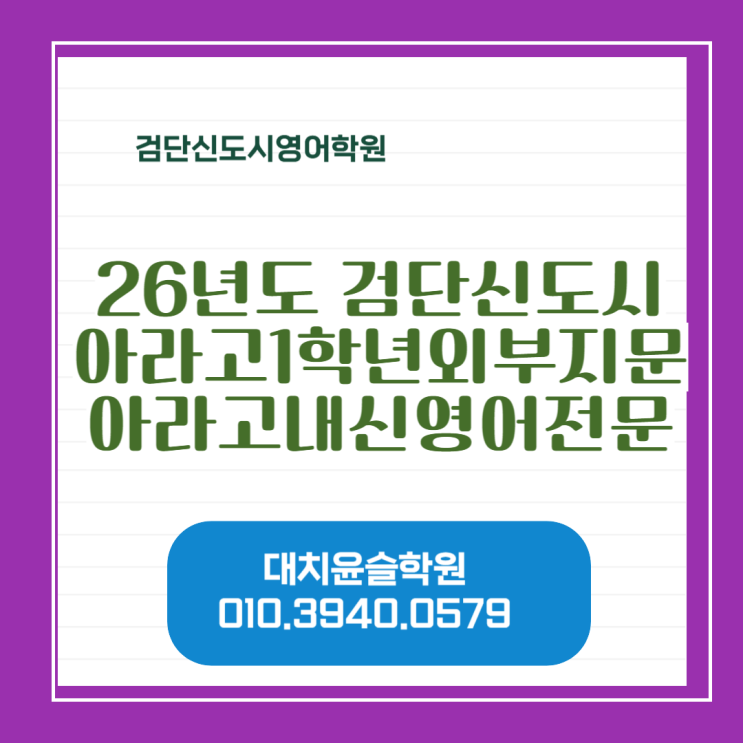 검단신도시영어학원> "초중고 영어 프리미엄 영어학원" 대치윤슬영어학원 입니다. 검단신도시영어학원 대치윤슬학원에서 26년도 아라고1학년 중간고사 외부지문 포스팅 해드립니다. <검단신도시영어학원 대치윤슬이 아라고 1학년 외부지문 내신대비에 강한 진짜 이유> 시험이 코앞입니다. 지금 이 순간에도 검단신도시 곳곳의 학원 불빛이 늦은 밤까지 꺼지지 않고 있습니다. 대치윤슬영어학원도 마찬가지입니다. 오늘도 밤 11시가 넘어서야 마지막 학생이 교실 문을 나섭니다. 그런데 여기서 한 가지 물음이 생깁니다. "우리 아이는 지금 제대로 된 곳에서 준비하고 있는 걸까?" 아라고 1학년 첫 내신. 고등학교 내....... <img src="https://blogthumb.pstatic.net/MjAyNjA0MTlfMjkw/MDAxNzc2NTI0ODc1MTc3.r1qUOLTv7RFXEMO7fT_zy3rH_5KI6vQtjdzRLq5Wxqcg.6BeTS50TF3Gsg0KNw4PjZtzlwWpTVUbImPrvKOCh7kkg.PNG/%C1%A6%B8%F1%C0%BB_%C0%D4%B7%C2%C7%D8%C1%D6%BC%BC%BF%E4_-001.png?type=s3" />