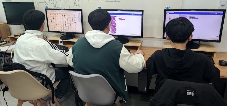 안녕하세요. 초/중/고 코딩전문학원 뉴메이킹코딩학원입니다.^^ 초등 코딩 교육, 왜 달라야 할까요? 많은 코딩학원에서는 정해진 예제를 따라 하며 모든 학생이 똑같은 결과물을 만들어냅니다. 하지만 이런 방식은 ‘코딩을 따라 하는 것’에 그칠 뿐, 아이 스스로 생각하는 힘을 키워주기에는 부족합니다. 저희 학원은 다르게 지도합니다. 단순히 같은 코드를 반복하는 수업이 아니라, 블록 하나하나의 의미와 활용 방법을 이해한 뒤 학생이 직접 아이디어를 떠올리고 자신만의 작품을 완성해 나가는 수업을 진행합니다. [ 학생 작품1 _초4 김** ] "무궁화꽃이 피었습니다" [ 학생 작품2 _초5 박** ] "심심한 수업시간에 해드스....... <img src="https://blogthumb.pstatic.net/MjAyNjA0MTdfMjkx/MDAxNzc2NDI4MTQzODM1._30cg98Io3Uz2DjvFomVjN2V6mfuPNJ68Lu749LtTH0g.NQYSAVmN2OWZXdBQQyviKAKBdp2R2c2SO4JX-Chax0Yg.PNG/%B4%BA%B8%DE%C0%CC%C5%B7%C4%DA%B5%F9_%C3%CA%B5%EE_%BA%ED%B7%CF%C4%DA%B5%F9.png?type=s3" />