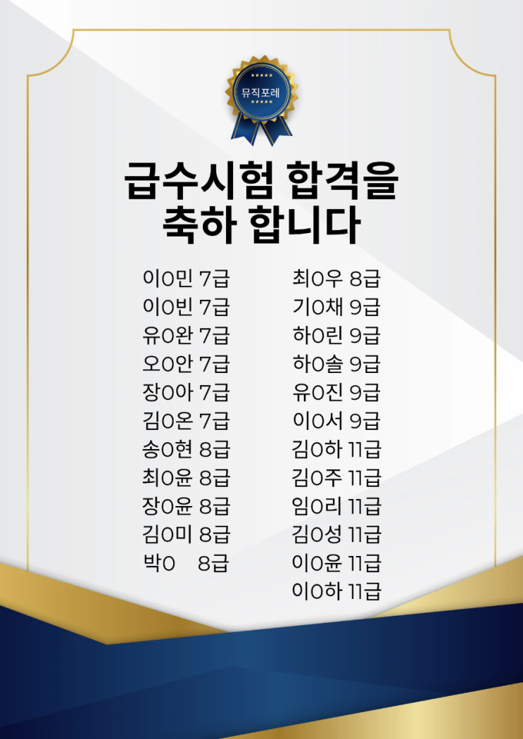 뮤직포레 피아노 급수시험 전원합격 했어요