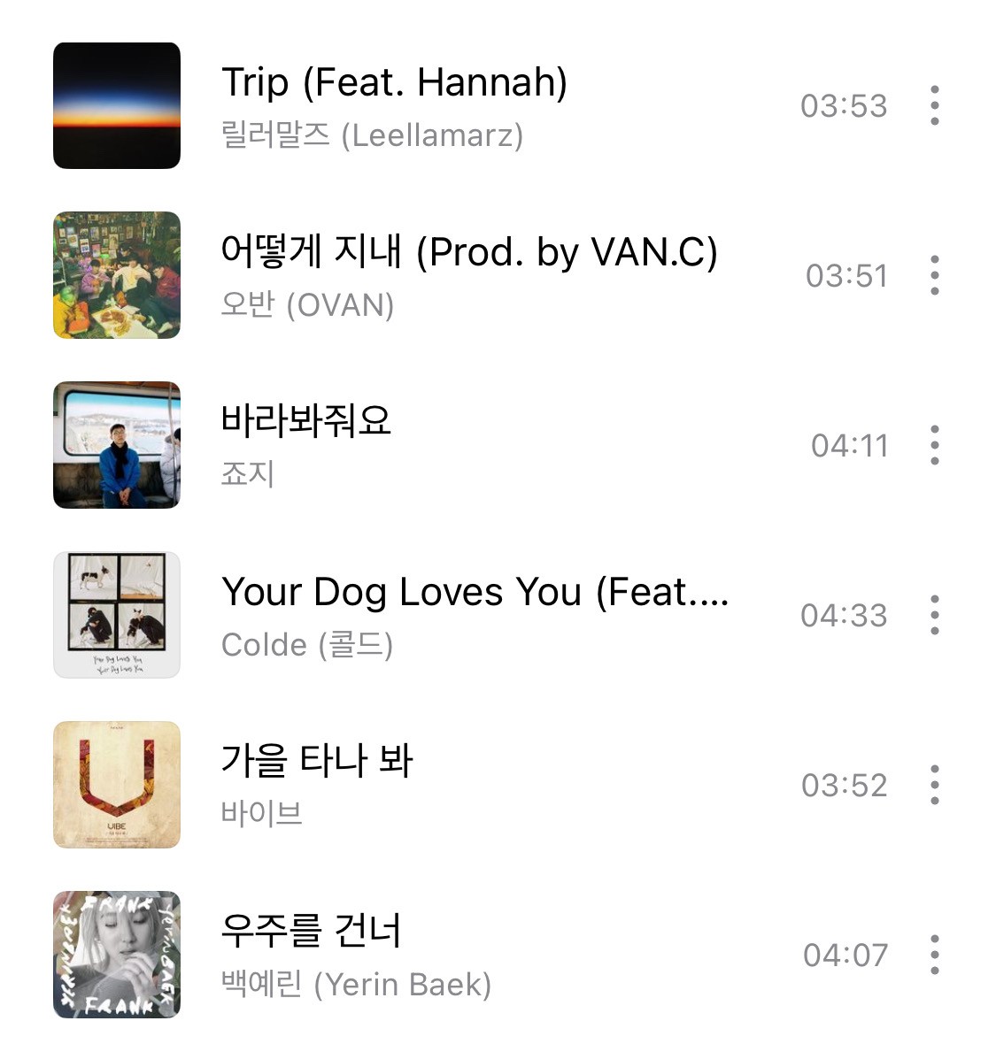 밍기뉴 - 나아지지 않는 날 데리고 산다는 건재현 X d.ear - Try again빌리 아일리시 - WILDFLOWER