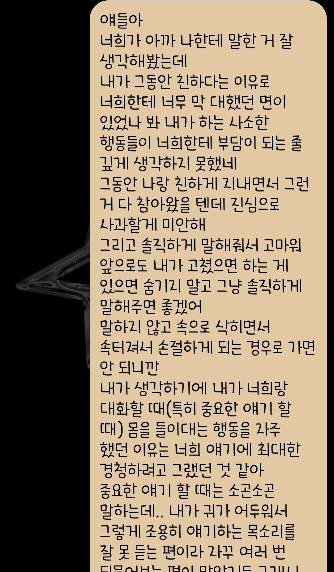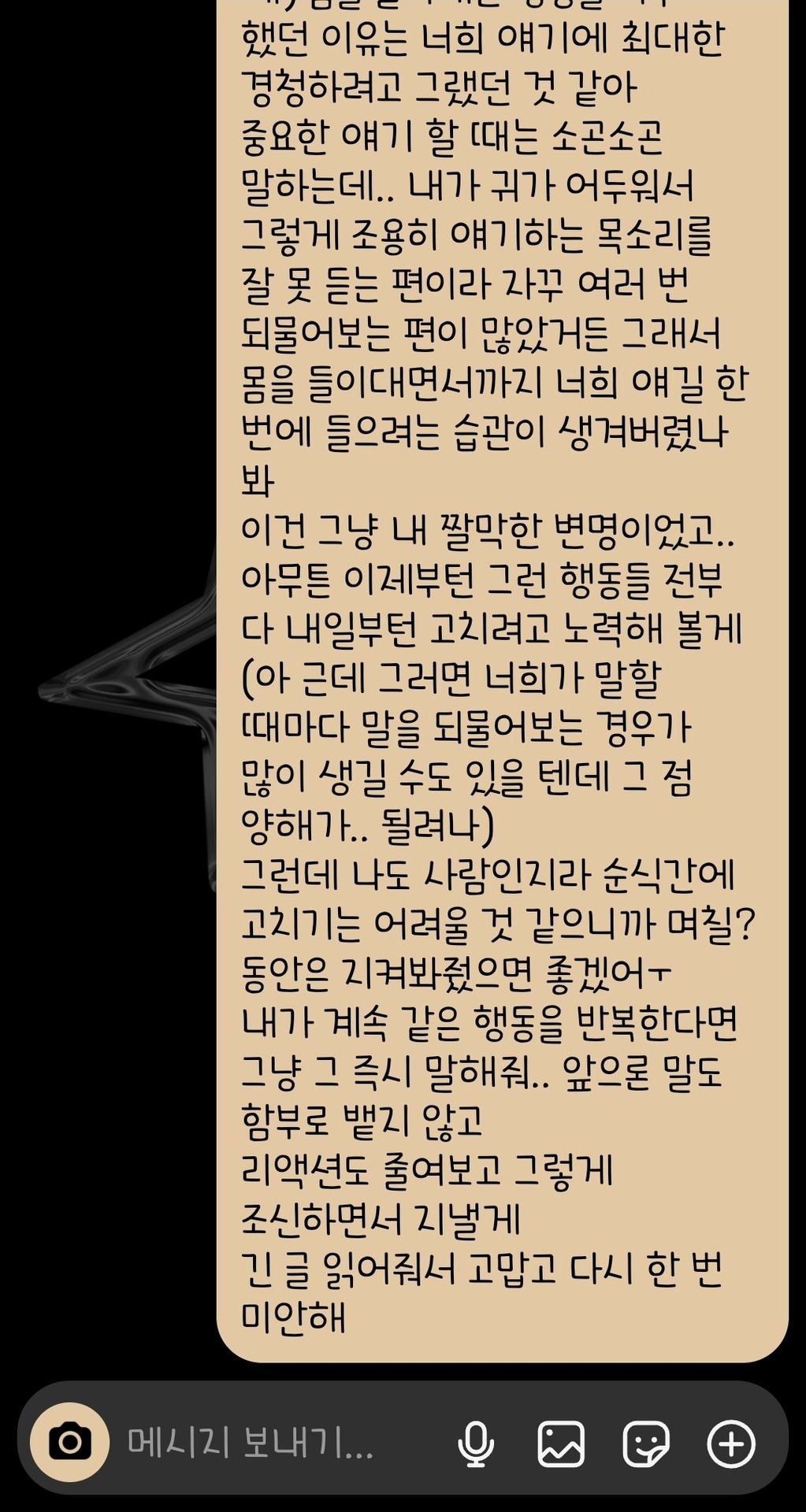 단뎀방에 장문글? 사과문?을 써서 보냈거든?