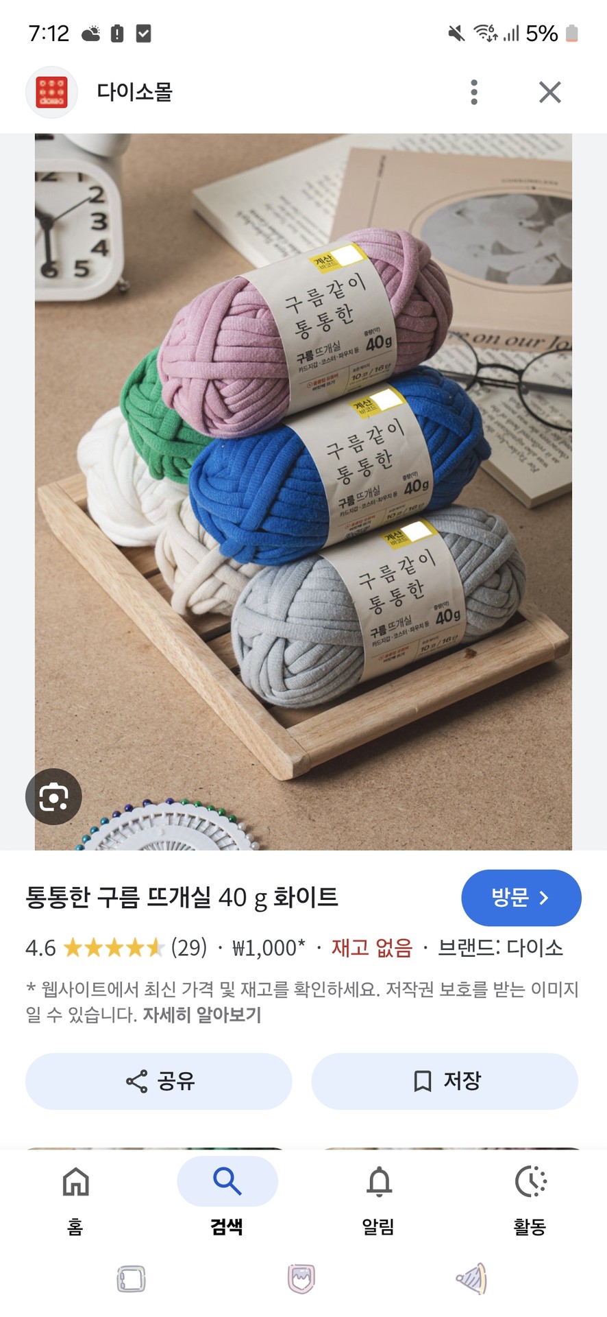 혹시 이 뜨개실 다이소에서 보셨나요ㅠㅠ최애 커스텀 목도리 만드려고 단축수업 날 신나서 다이소 갔는데 없더라고요ㅠ