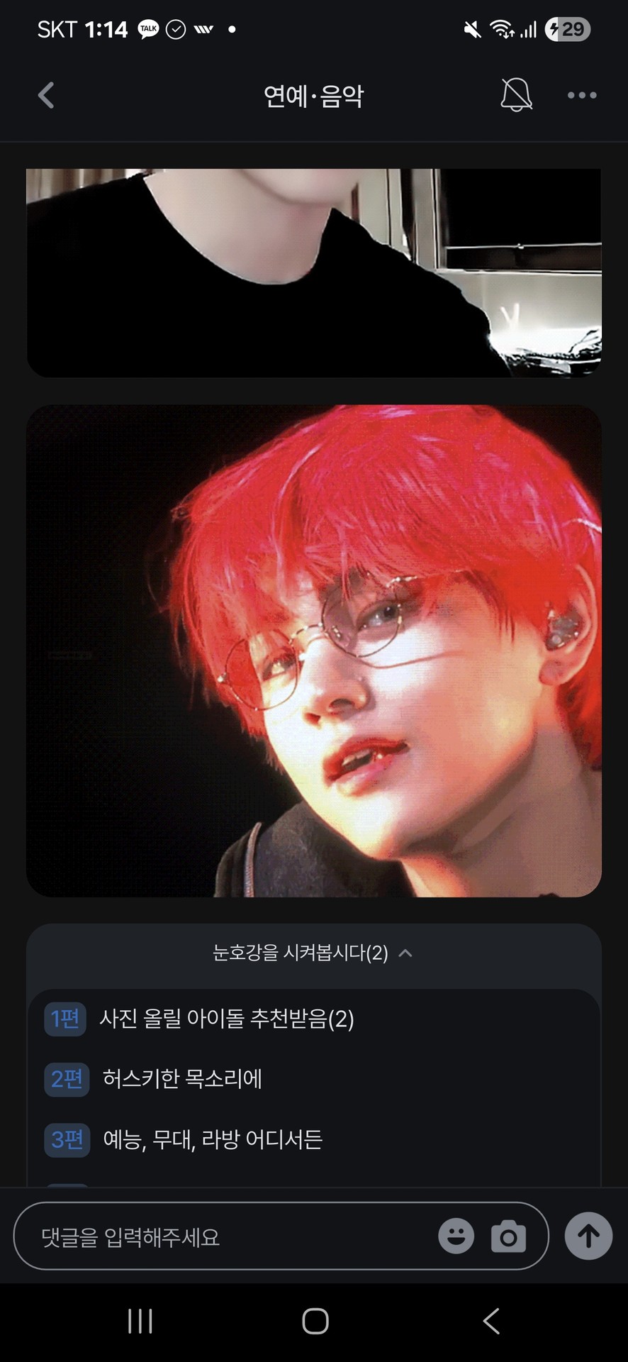 대표적으로 이거 올릴생각 없었는데아미분이 올리라고 해서 올린거임ㅋㅋ빨강머리 안경 뷔