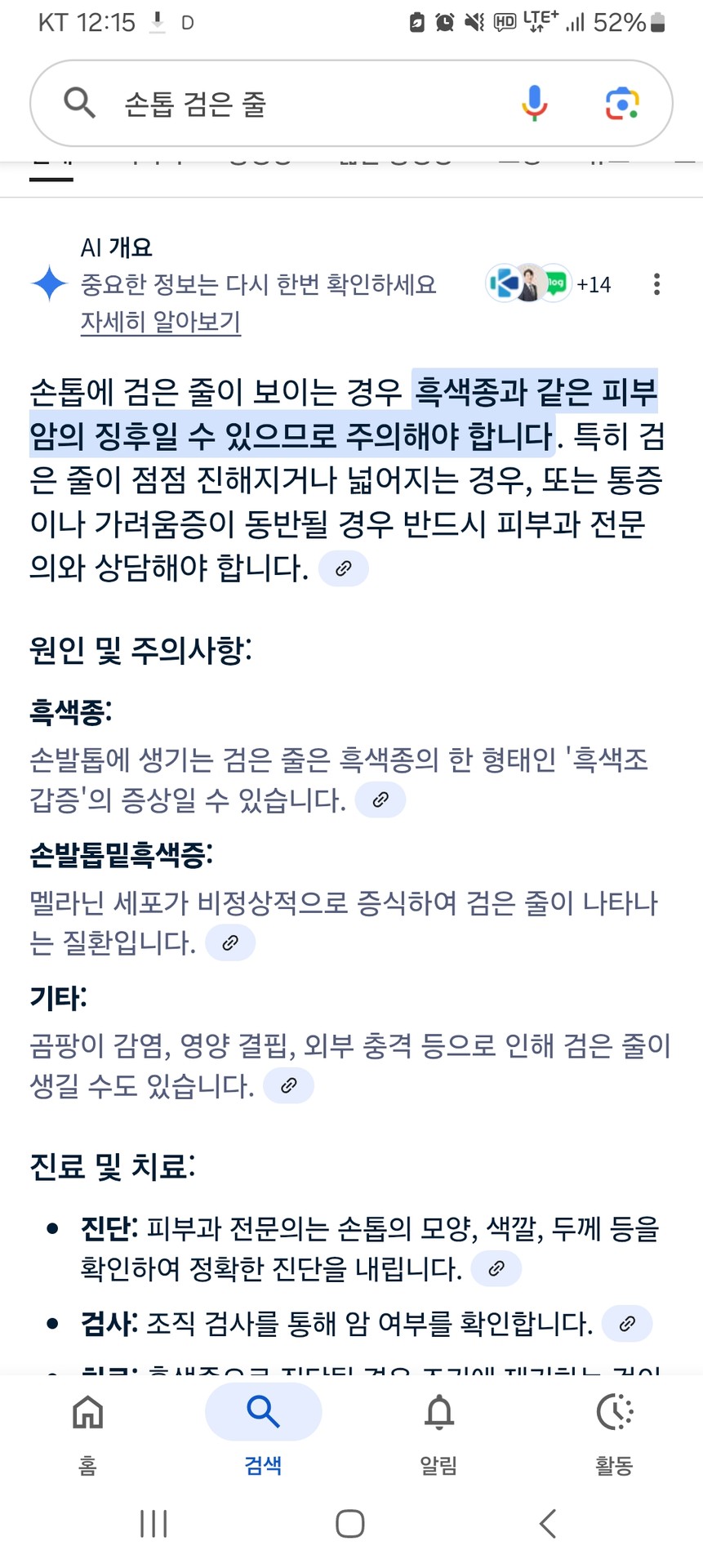 난 어렸을 때부터 엄지에 손톱에 검은 줄 있는데 지금 중 1인데도 멀쩡해!! 그래도 혹시 모르니까 병원 한 번 가봐